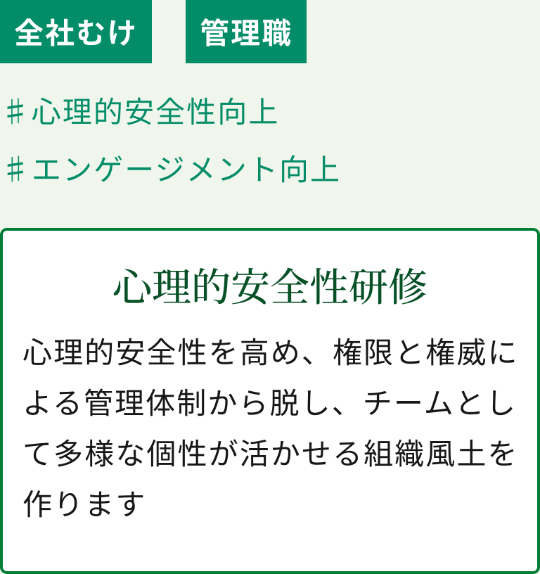また、チーム変革の仕組みを理解し、現場が主体的に改革を進められるよう伴走します。